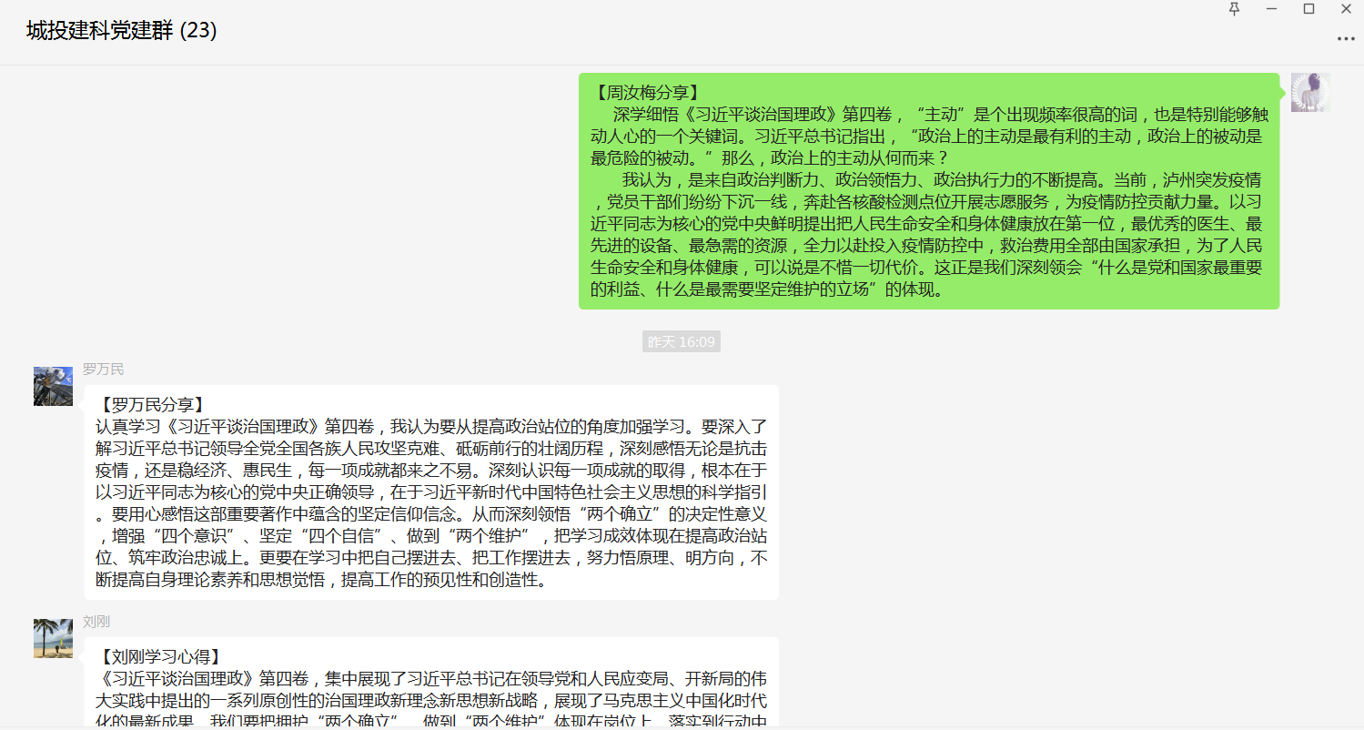 智慧城市運(yùn)營(yíng)公司黨支部采取領(lǐng)導(dǎo)領(lǐng)學(xué)與個(gè)人自學(xué)相結(jié)合的方式,深入學(xué)習(xí)領(lǐng)會(huì)《習(xí)近平談治國(guó)理政》第四卷主要內(nèi)容和核心要義,堅(jiān)持學(xué)習(xí)中把職責(zé)擺進(jìn)去、把工作擺進(jìn)去,切實(shí)把學(xué)習(xí)成效轉(zhuǎn)化為推動(dòng)城市增值服務(wù)高質(zhì)量發(fā)展﹑高品質(zhì)轉(zhuǎn)變的實(shí)際舉措。