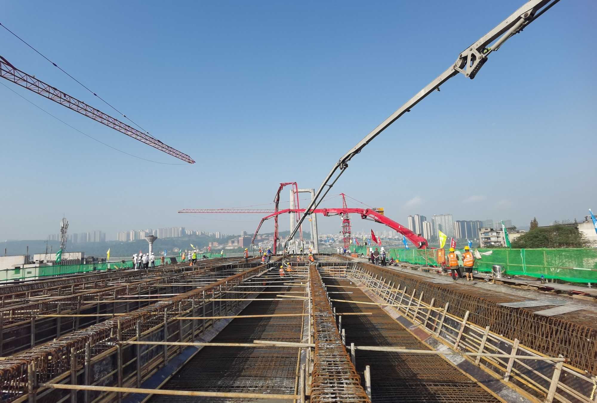 備受市民關(guān)注的瀘州首座雙層公軌兩用橋梁瀘州長江二橋于今日澆筑東引橋箱梁混凝土。