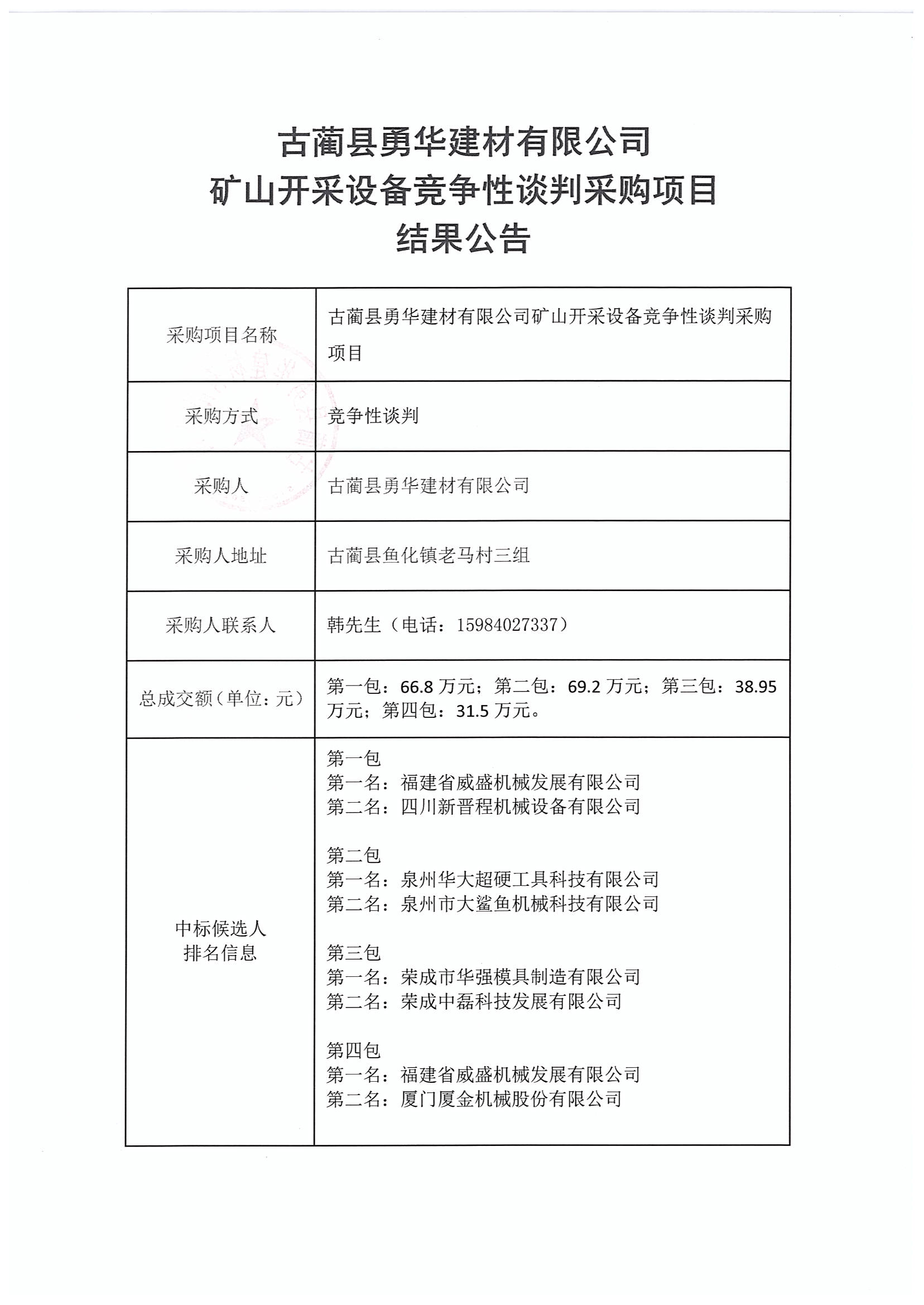 礦山開采設(shè)備競爭性談判采購項目結(jié)果公告