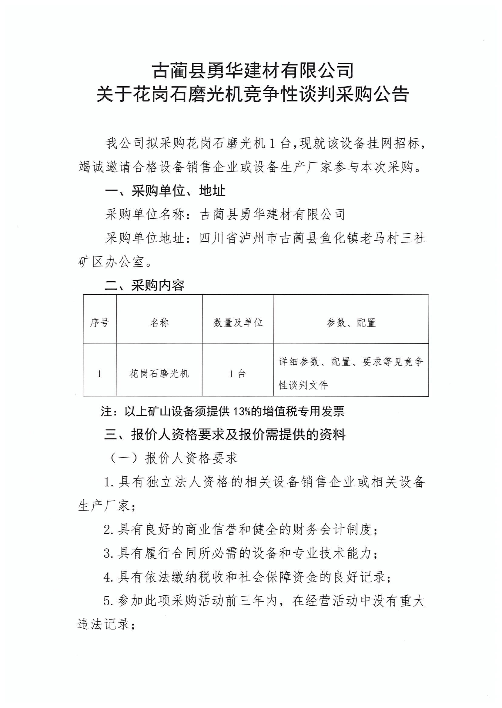 花崗石磨光機(jī)競(jìng)爭(zhēng)性談判采購(gòu)公告