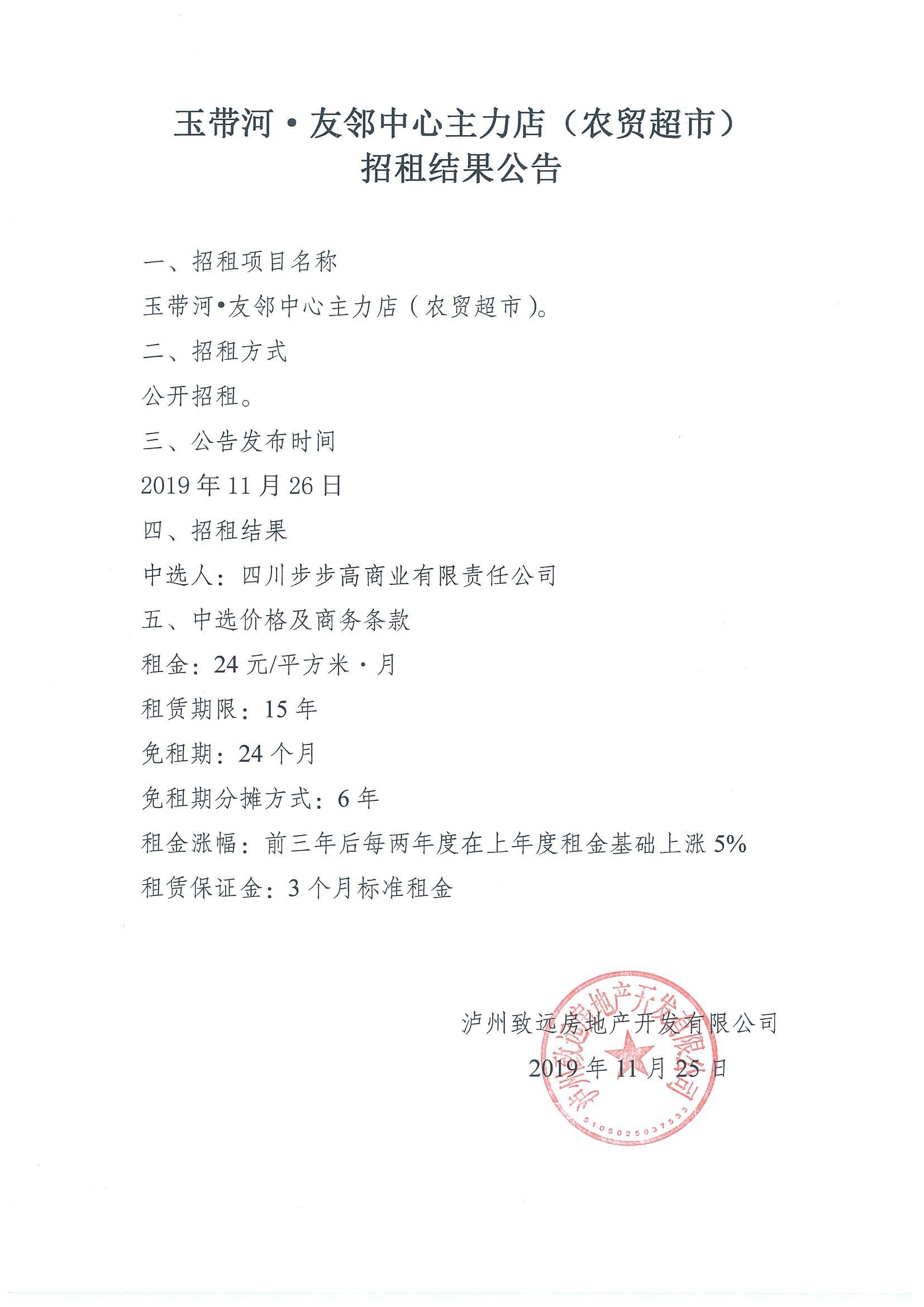 玉帶河·友鄰中心主力店(農(nóng)貿(mào)超市)招租結(jié)果公告