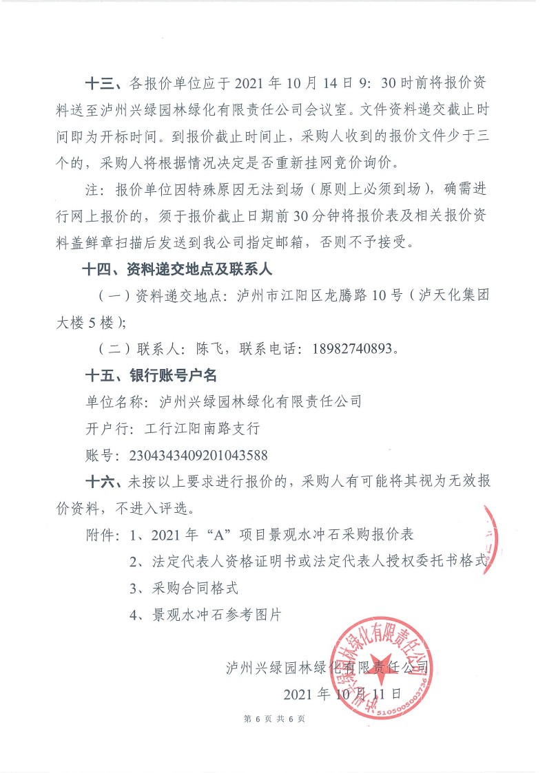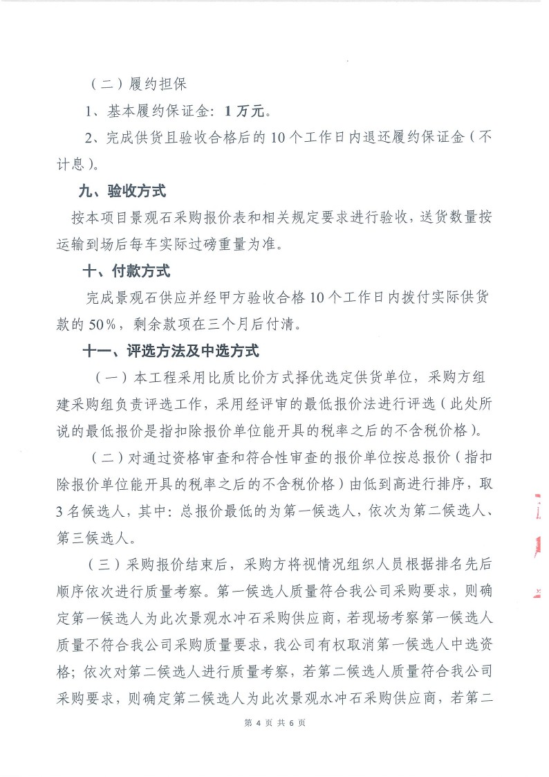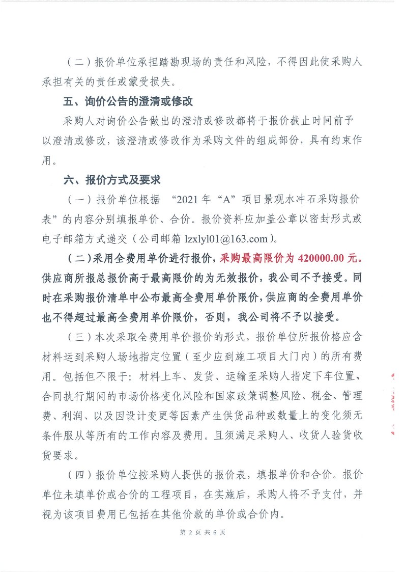 2021年“A”項目景觀水沖石采購詢價公告