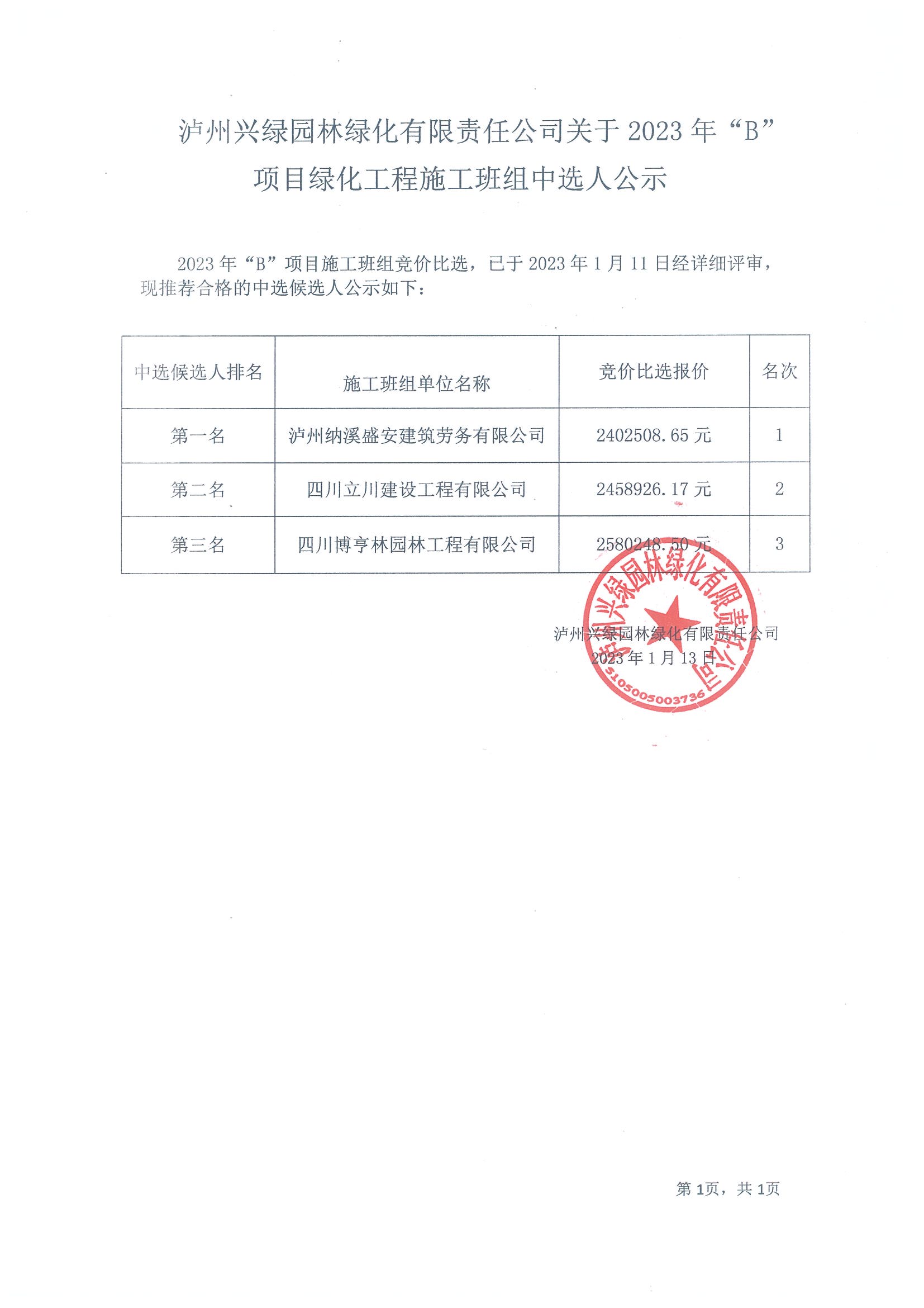 關(guān)于2023年“B”項(xiàng)目綠化工程施工班組中選人公示
