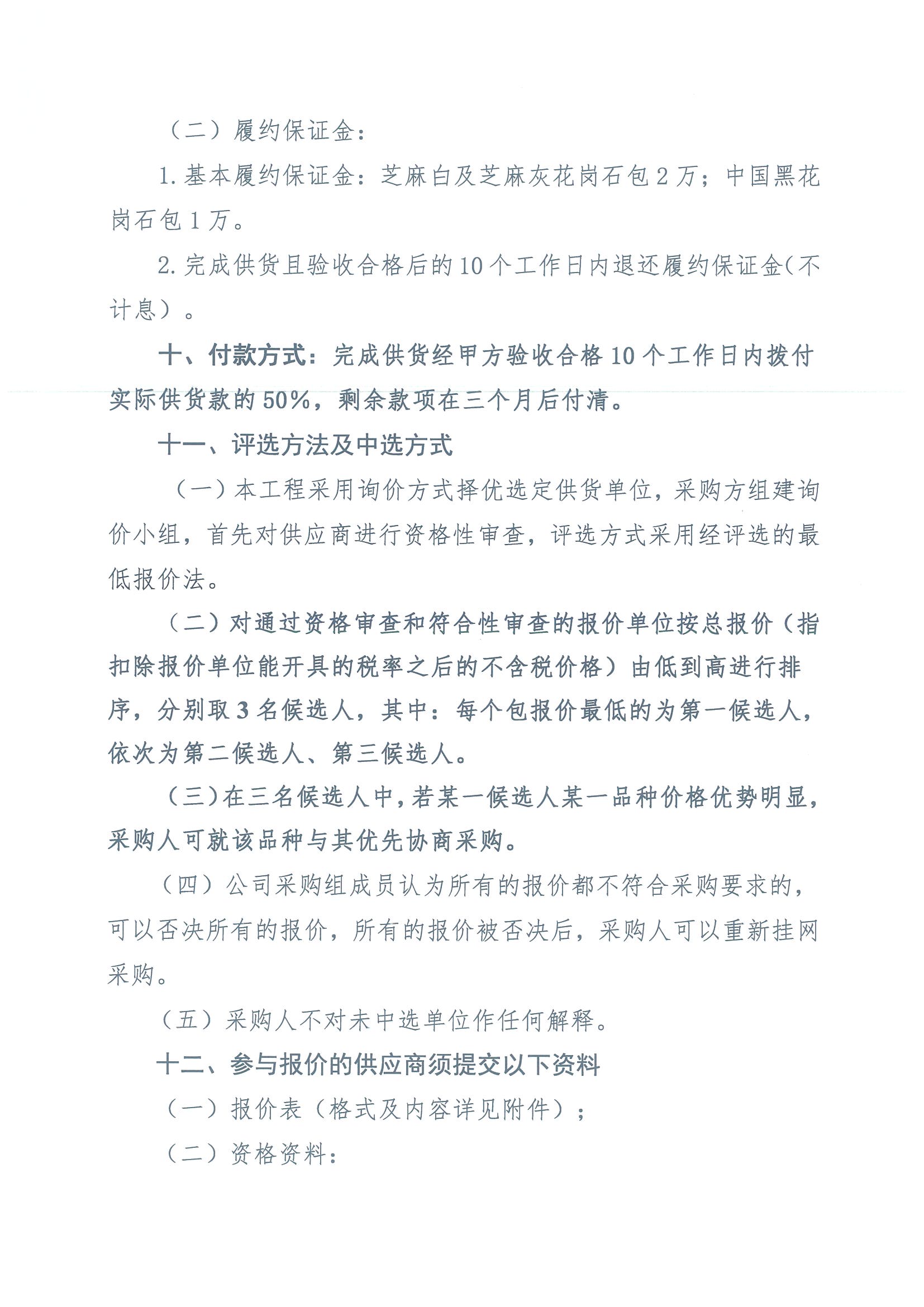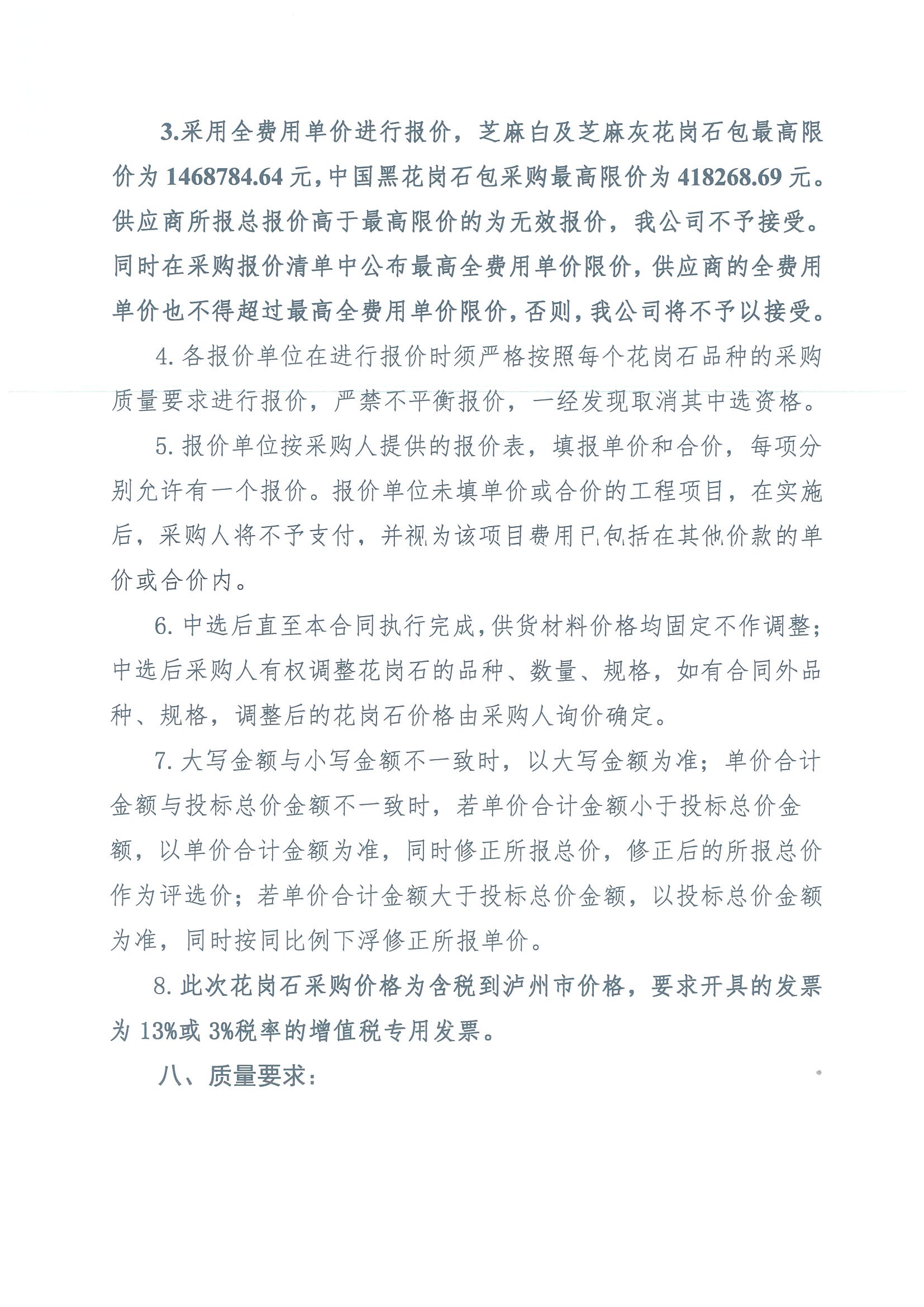 2023年“H”項(xiàng)目花崗石采購詢價(jià)公告