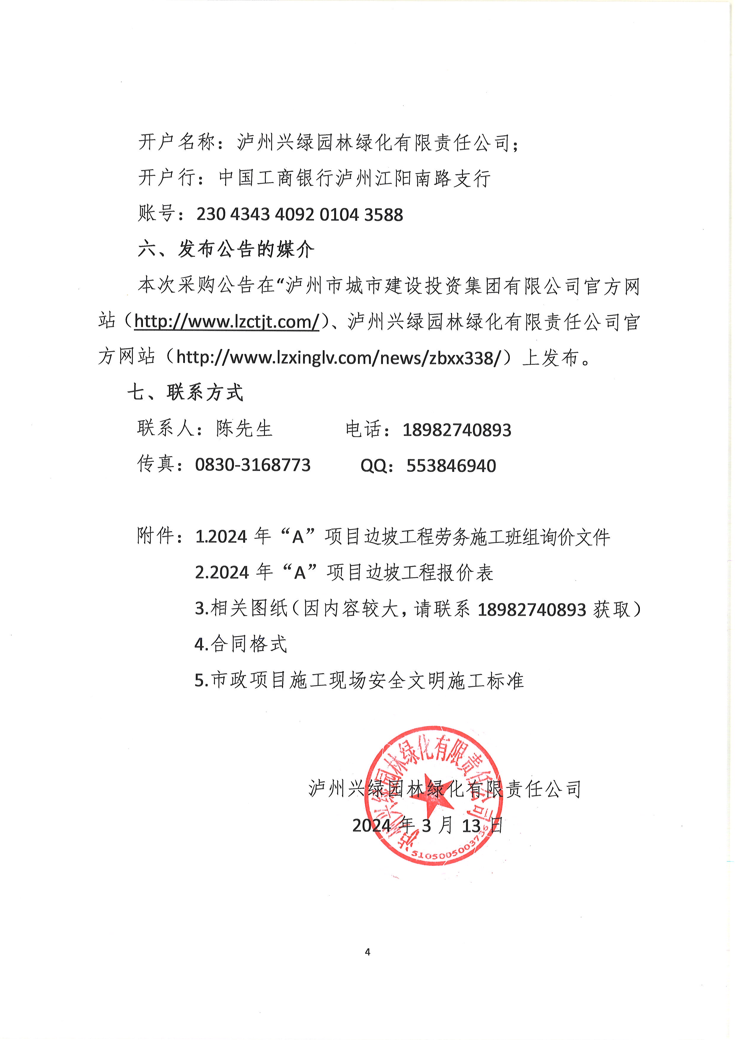 2024年“A”項目邊坡工程勞務(wù)施工班組采購公告
