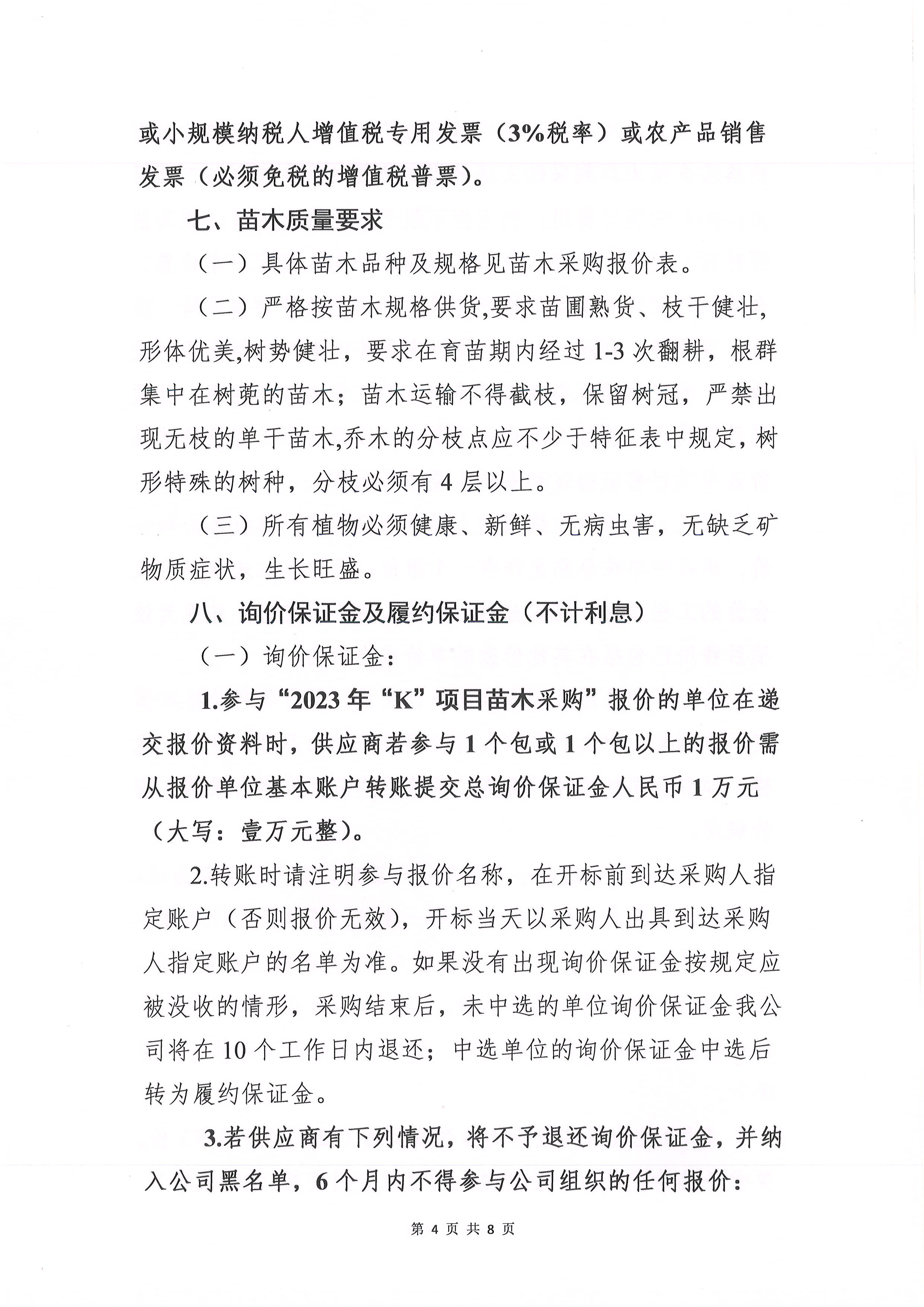 2023年“K”項目苗木采購