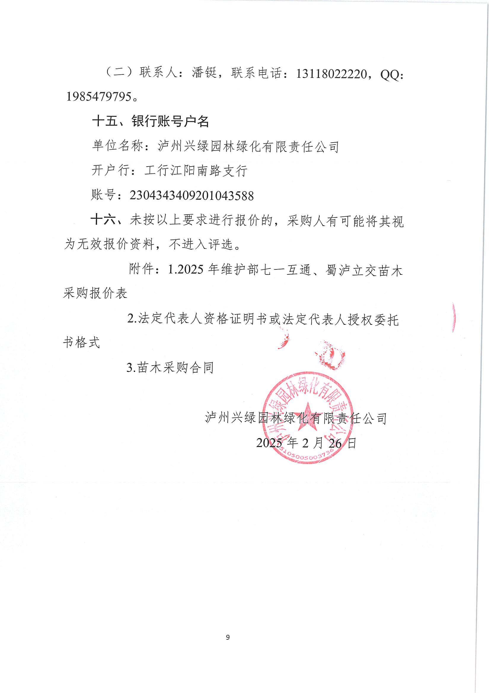 瀘州興綠園林綠化有限責(zé)任公司關(guān)于2025年維護(hù)部七一互通、蜀瀘立交苗木 采購詢價文件