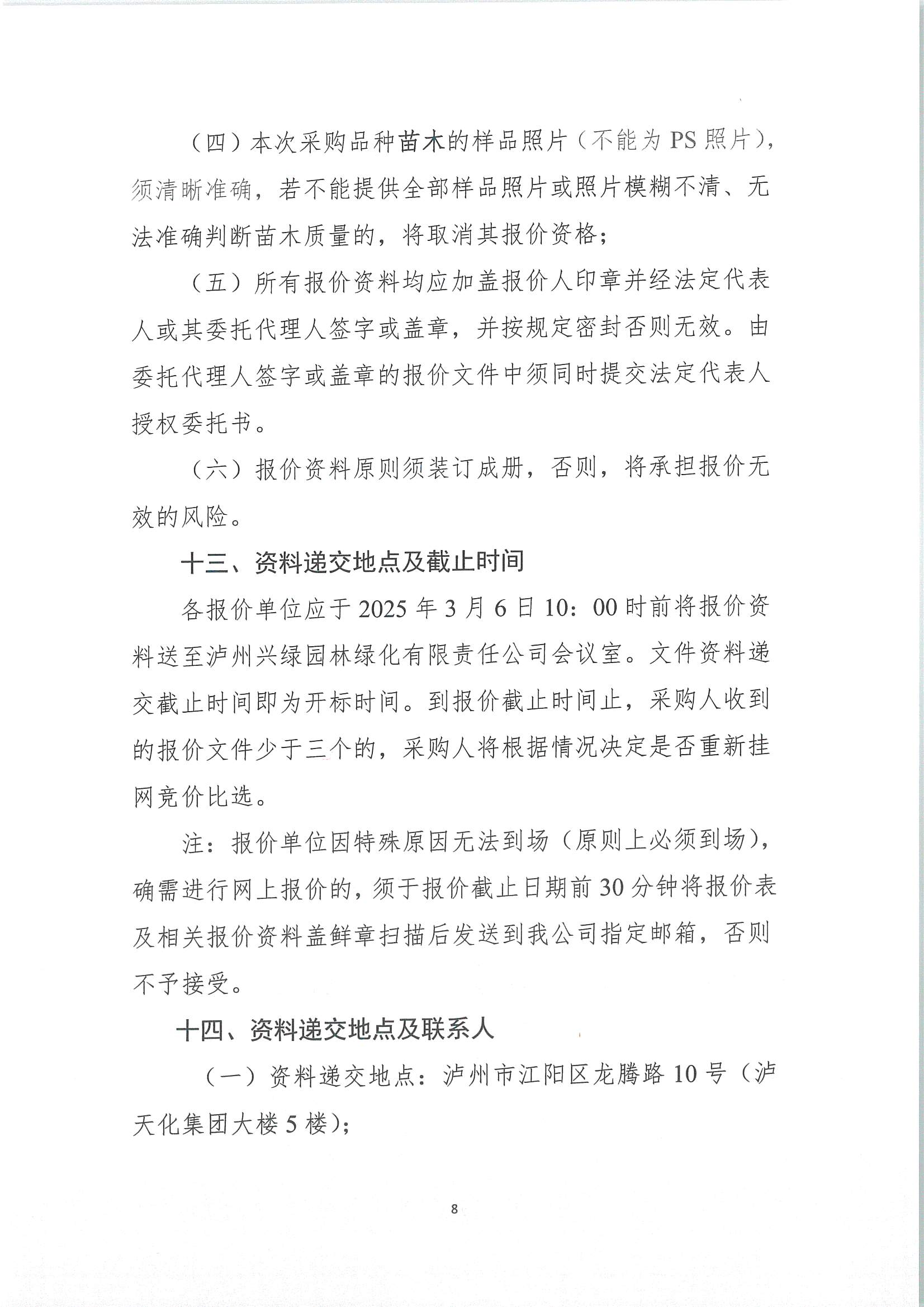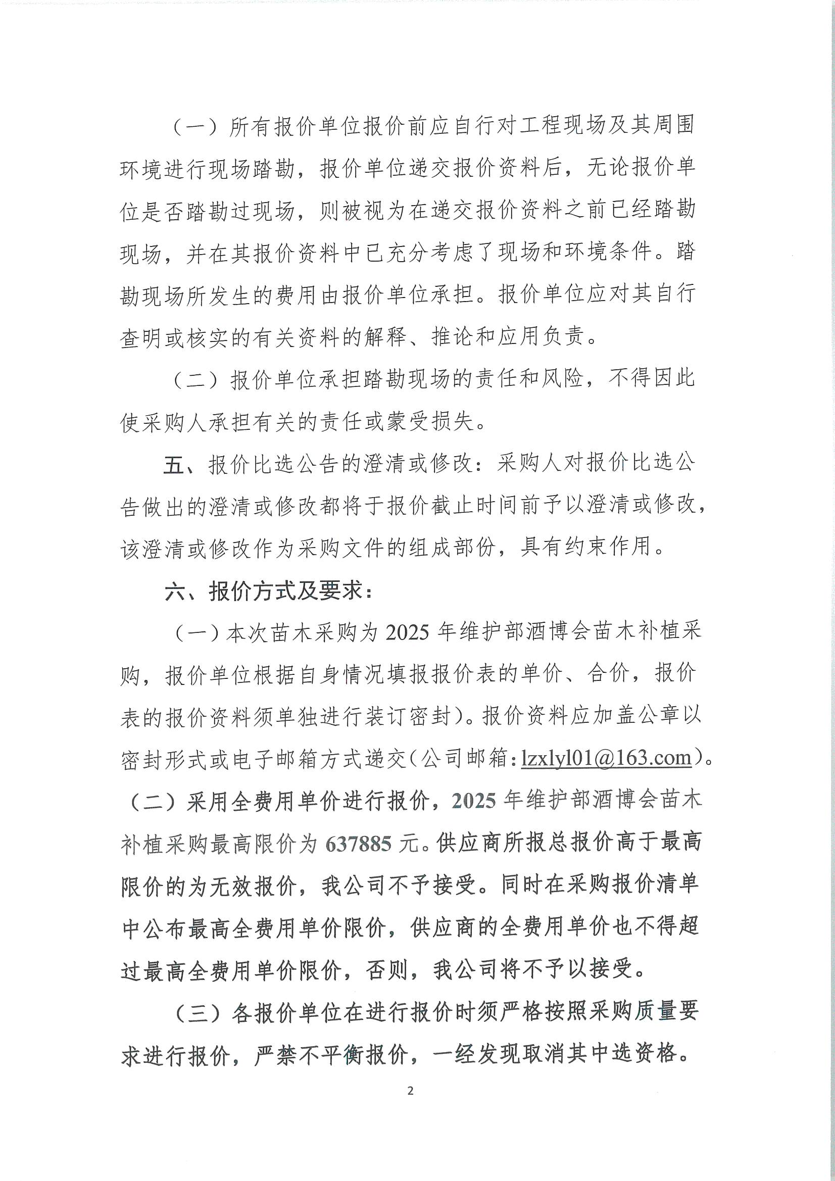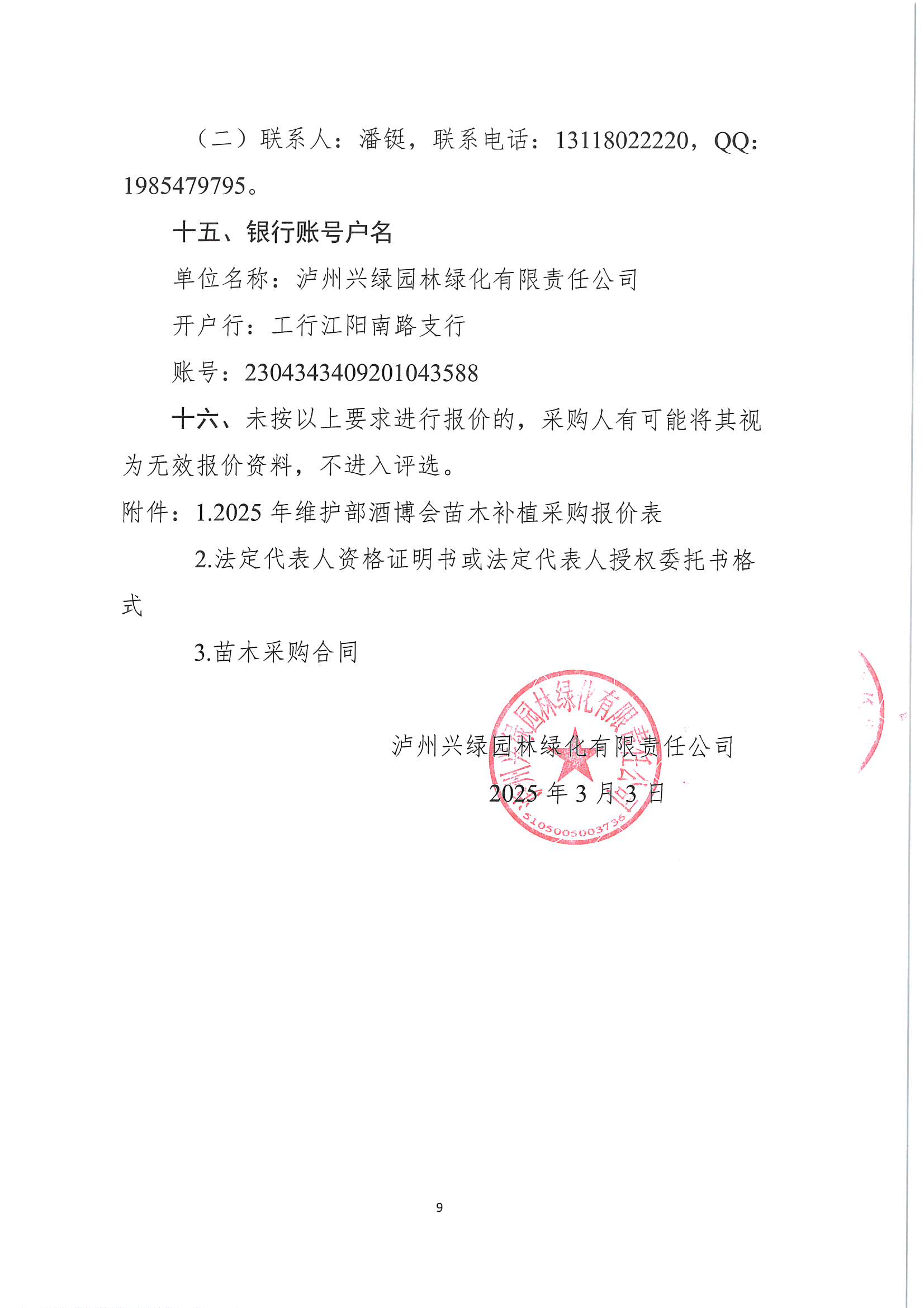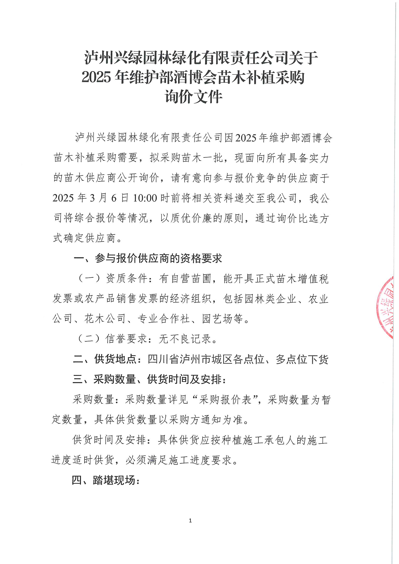 瀘州興綠園林綠化有限責(zé)任公司關(guān)于2025年維護(hù)部酒博會(huì)苗木補(bǔ)植采購(gòu)詢價(jià)文件