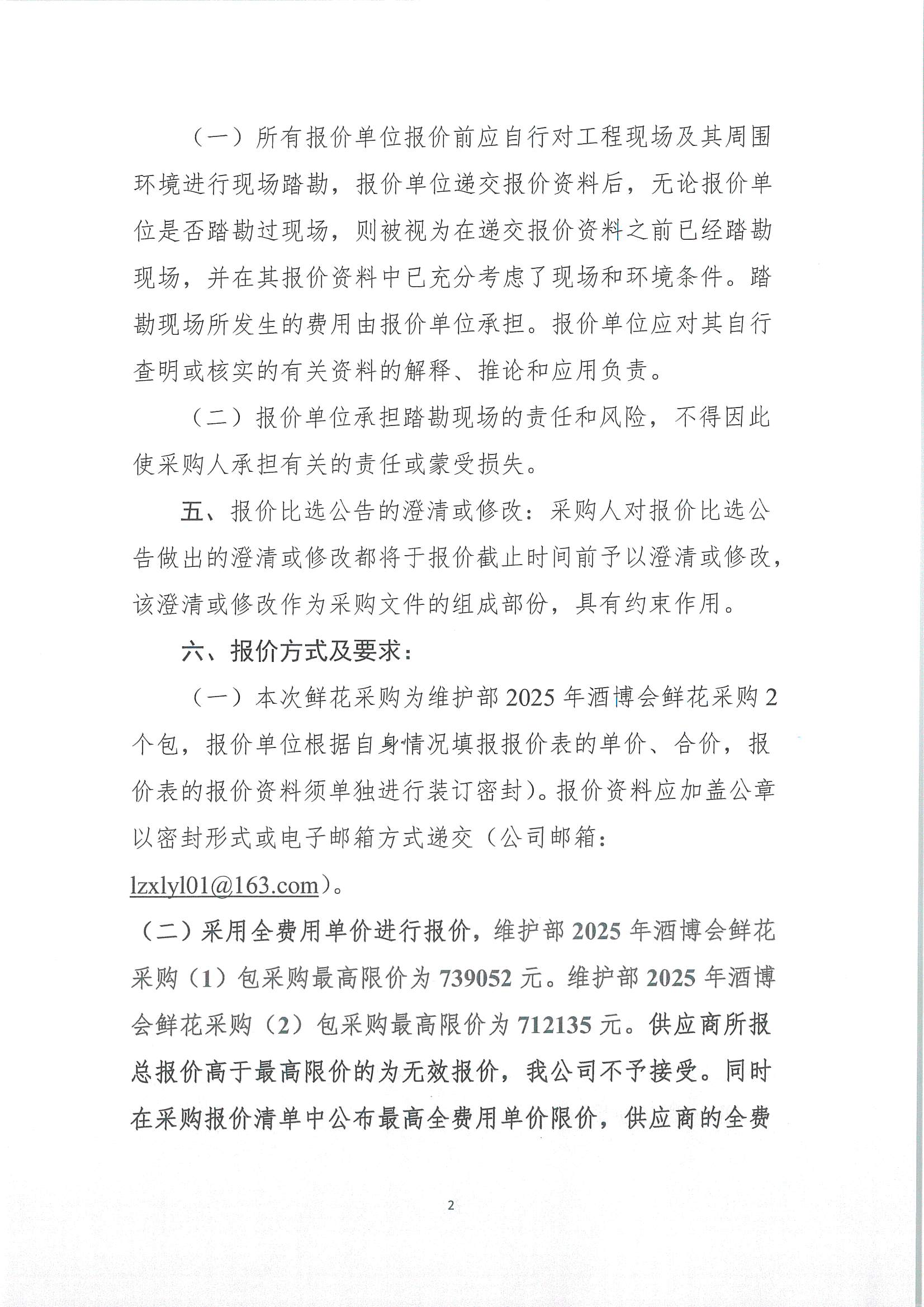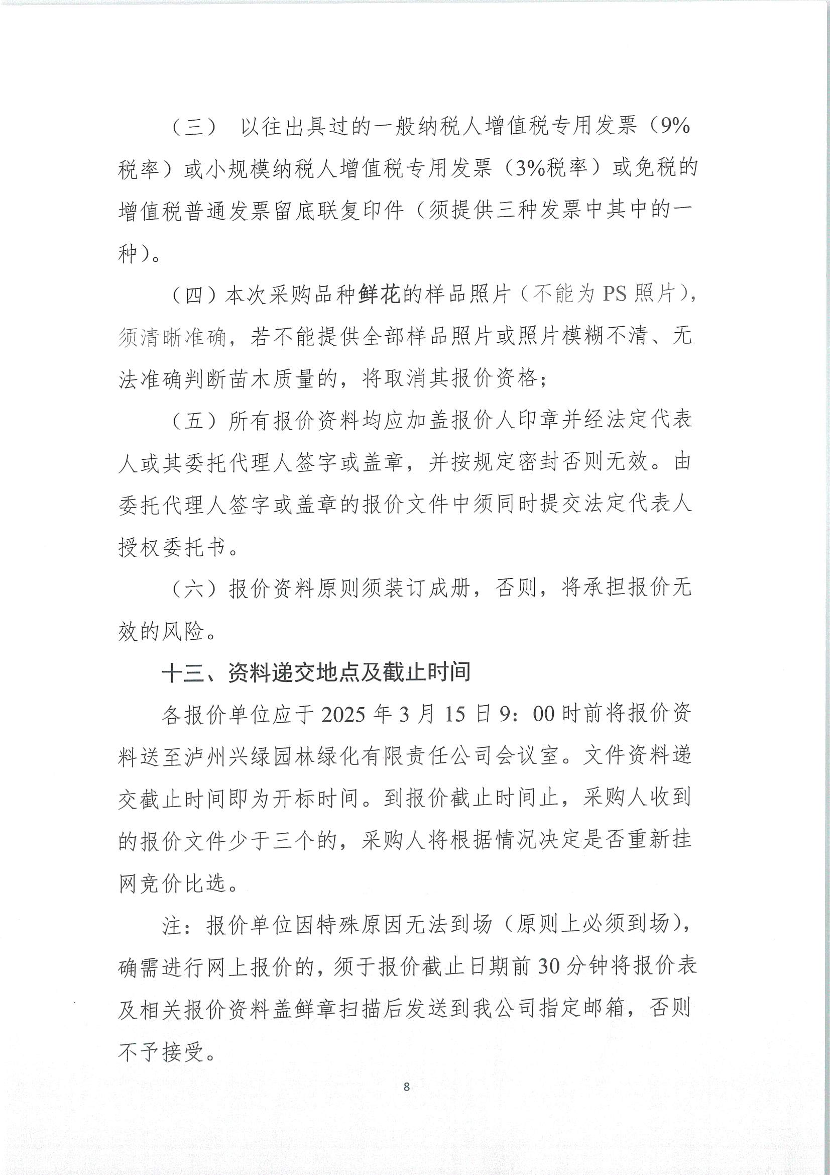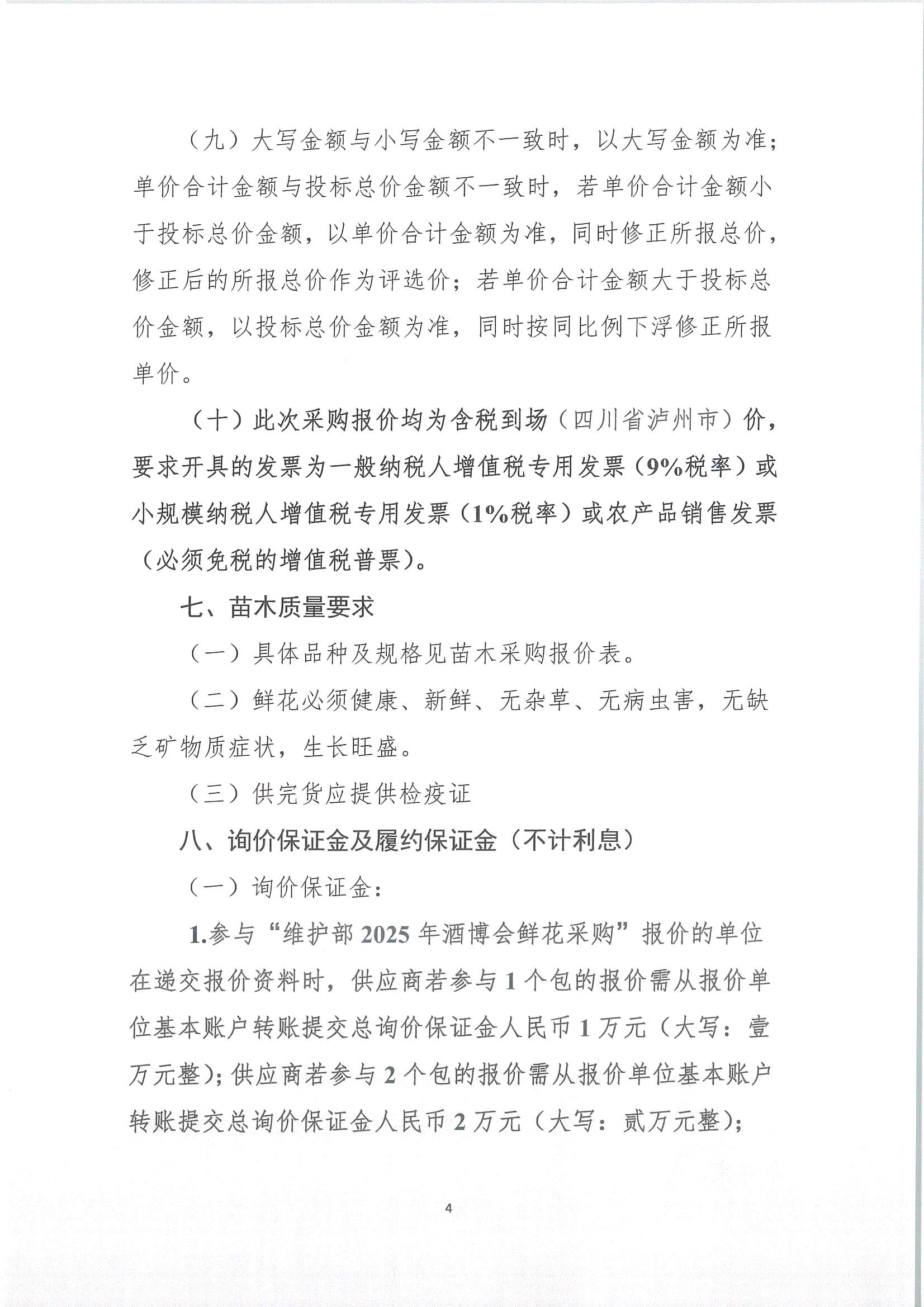 瀘州興綠園林綠化有限責(zé)任公司關(guān)于維護(hù)部2025年酒博會(huì)鮮花采購詢價(jià)文件